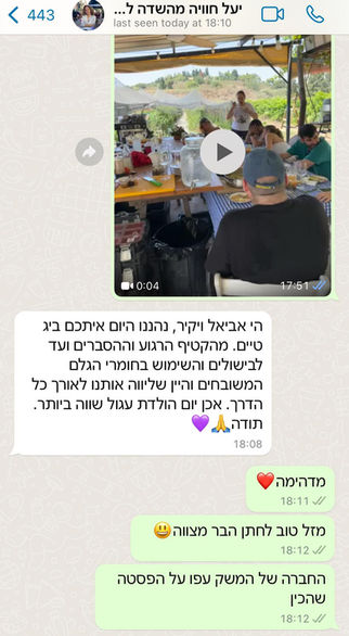 מיד אחרי מתכנסים סביב שולחן בשדה לבראנץ׳ מהירקות של הגינה ועוד תוצרת מעולה ממשקים בישראל.